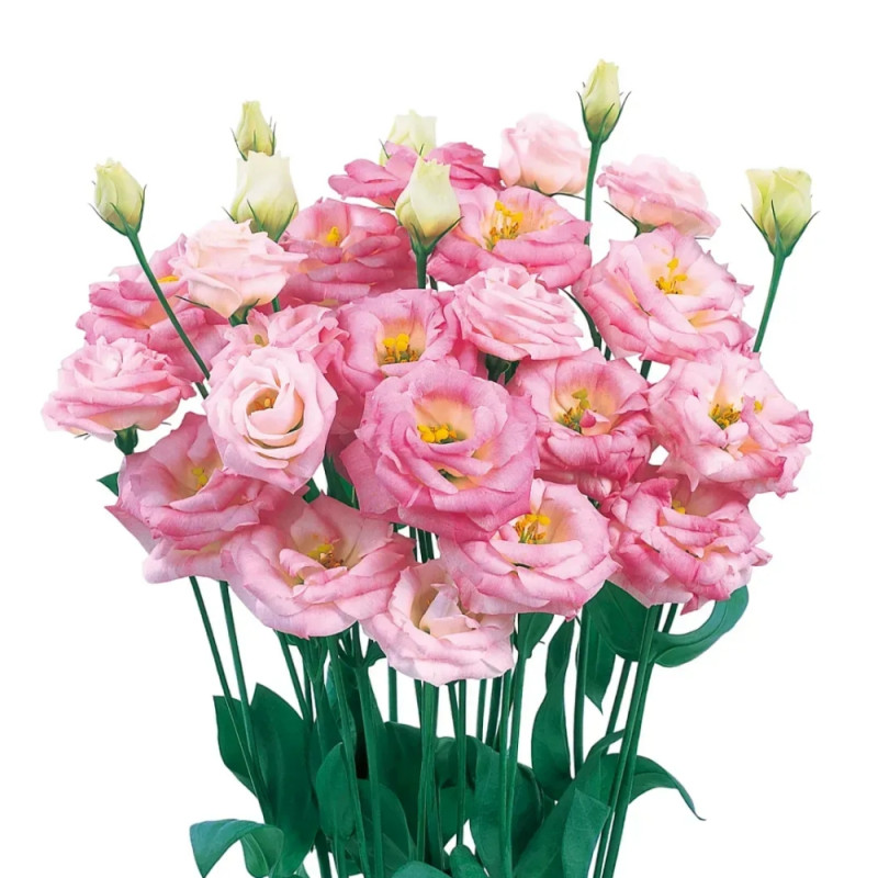 Эустома крупноцветная махровая Розита F1 (Lisianthus grandiflorum Rosita F1) светло-розовая — это непревзойденная высокорослая махровая серия, которая подходит для весеннего и осеннего цветения. Ее высота составляет 75-85 см, а на фоне зеленых листьев прекрасно смотрятся соцветия, похожие на розы, представленные в яркой цветовой гамме. Крепкие стебли обеспечивают легкую транспортировку растений.
