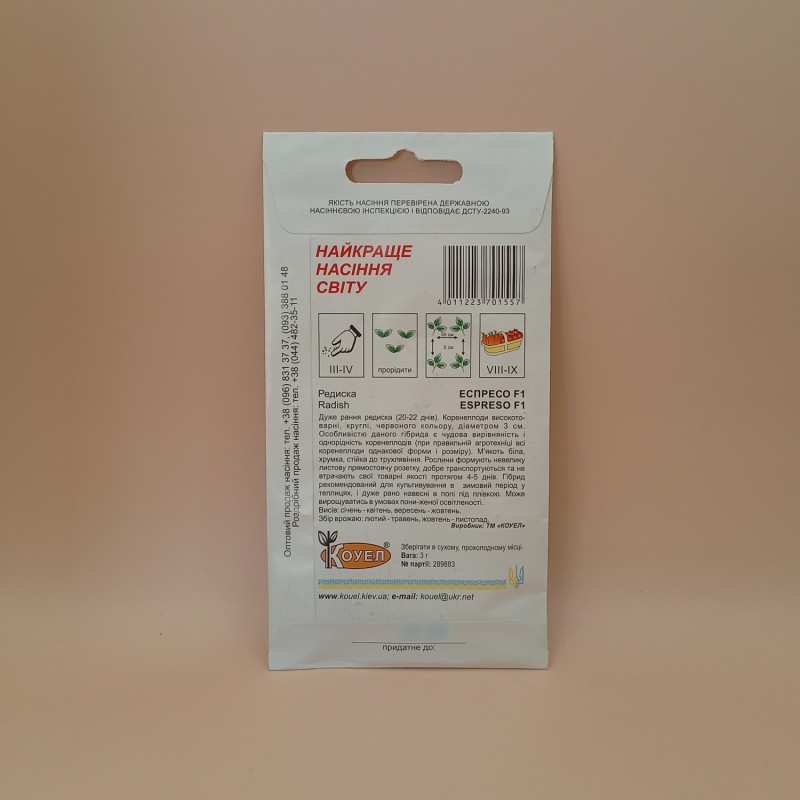 Семена редиса Эспрессо F1 (Satimex) могут быть в двух видах упаковки: