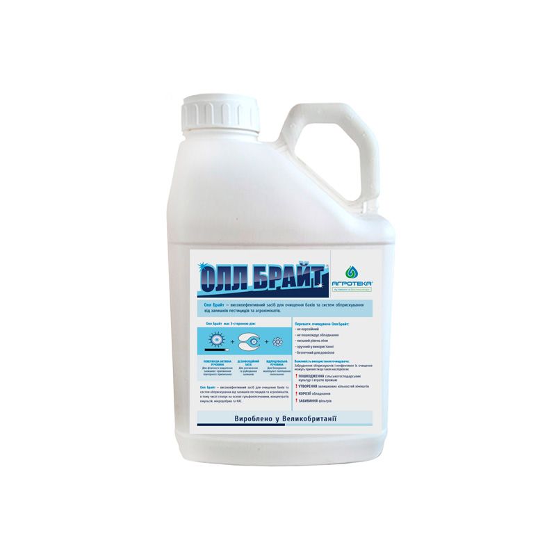 Благодаря адъюванту Олл Брайт можно избежать ряда проблем, угрожающих поломке техники и потере урожая. Остатки пестицидов не удаляются водой и обычными моющими средствами даже при регулярной промывке опрыскивателей.