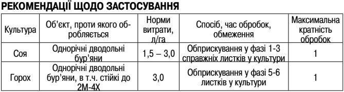 Селективный гербицид контактного действия для борьбы с однолетними двудольными сорняками в посевах сельскохозяйственных культур.