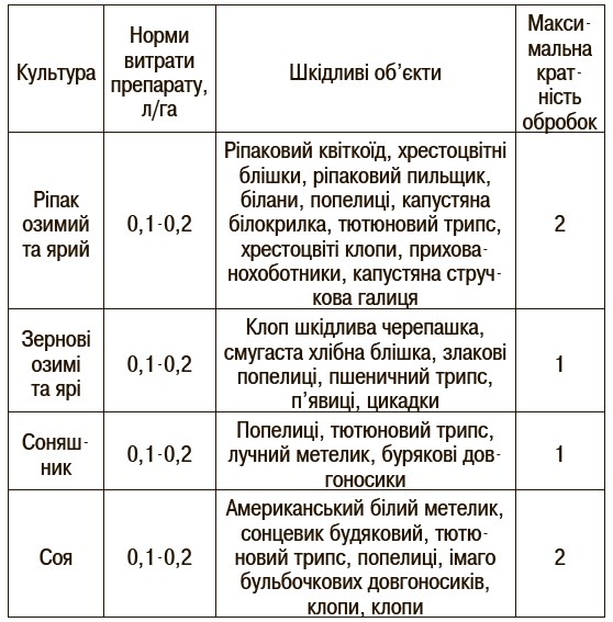 Высокоэффективный инсектицид системного и контактно-кишечного действия для борьбы против широкого спектра сосущих и листогрызущих вредителей.