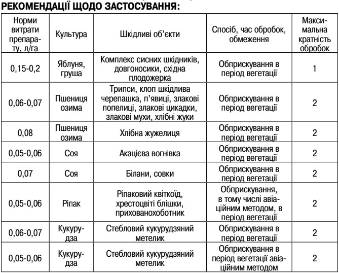 Действующее вещество: имидаклоприд, 300 г/л + лямбда-цигалотрин, 100 г/л.