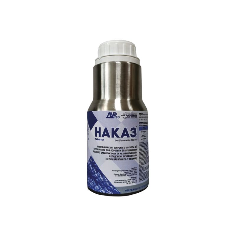 Препарат Наказ при взаимодействии с влагой воздуха выделяет газ фосфин. Фосфин, попадая в органы дыхания вредителей: