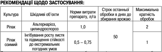 При применении на посевах озимого рапса в осенний период препарат тормозит формирование надземной массы растений.