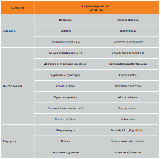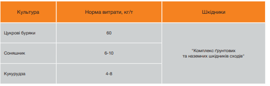 Назначение: Эффективный протравитель семян сахарной свеклы, кукурузы и подсолнечника против широкого спектра вредителей.