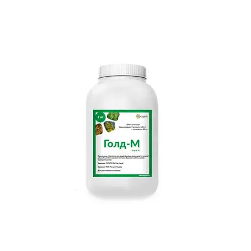 Голд-М, 72% в.г. – универсальный системно-контактный фунгицид защитного и лечебного действия. Металаксил оказывает системное действие, после проникновения в растение распространяется акропетально и защищает листья и побеги, образовавшиеся после обработки. Ингибирует у грибов биосинтез нуклеиновых кислот. Быстро сорбируется надземными органами и корневой системой растений.