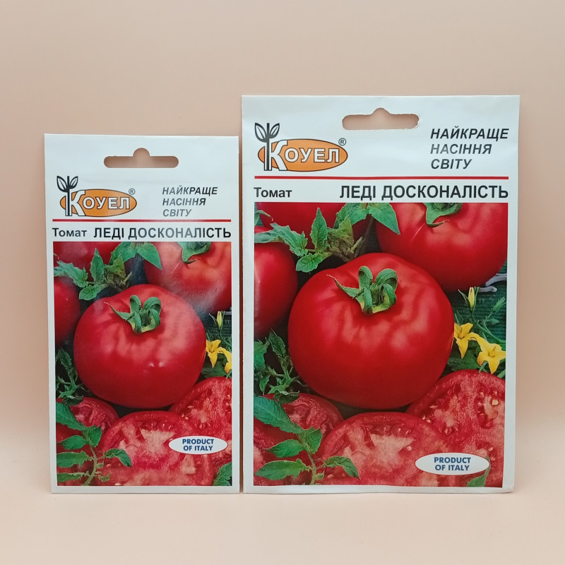 Леди Совершенство – среднеранний сорт томата детерминантного. Растение является мощным, среднерослым (90 см). Плод имеет идеальную форму, ярко-красную окраску, гладкий, мясистый, плотный. Средний вес – 250 гр. Устойчив к заболеваниям, растрескиваниям. Отличный вкус. Предназначен для использования на свежем рынке, переработки.