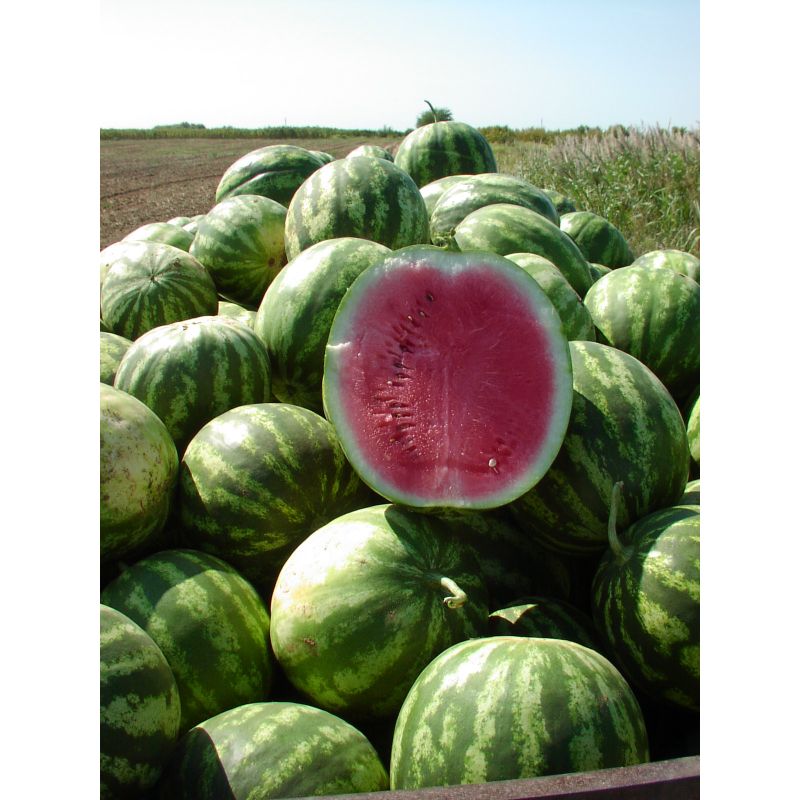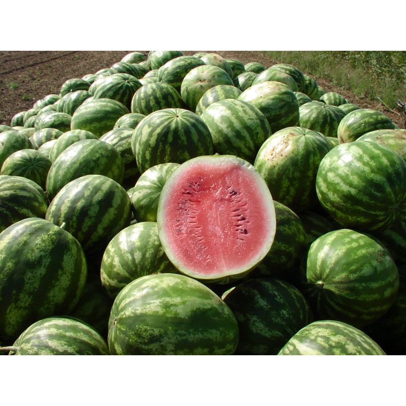 Характеристика плодов – арбуз светло-зеленого цвета с темными полосками, мякоть ярко-красная. Средняя маса плода 8-12 кг при диаметре 35-40 см с высоким содержанием сахаров (Brix 11%).