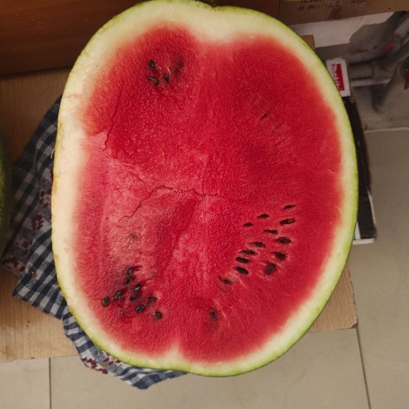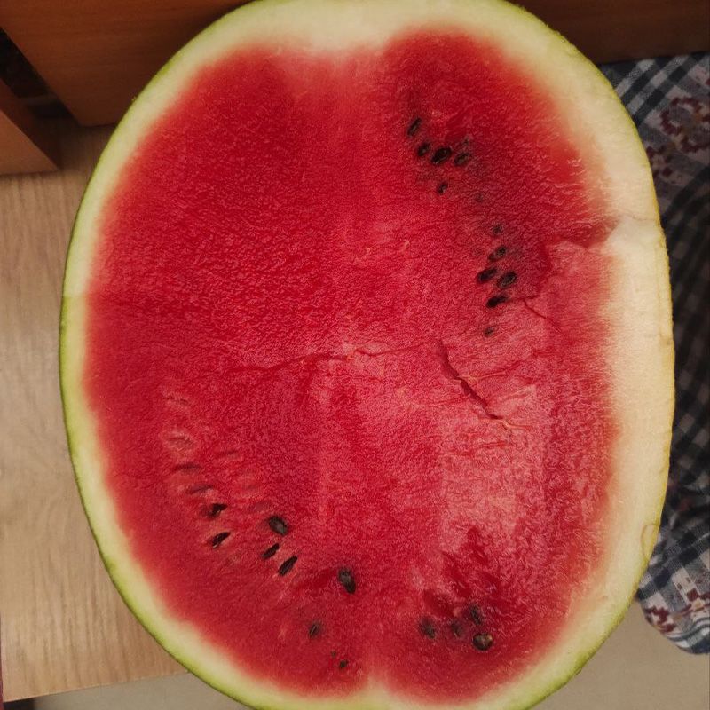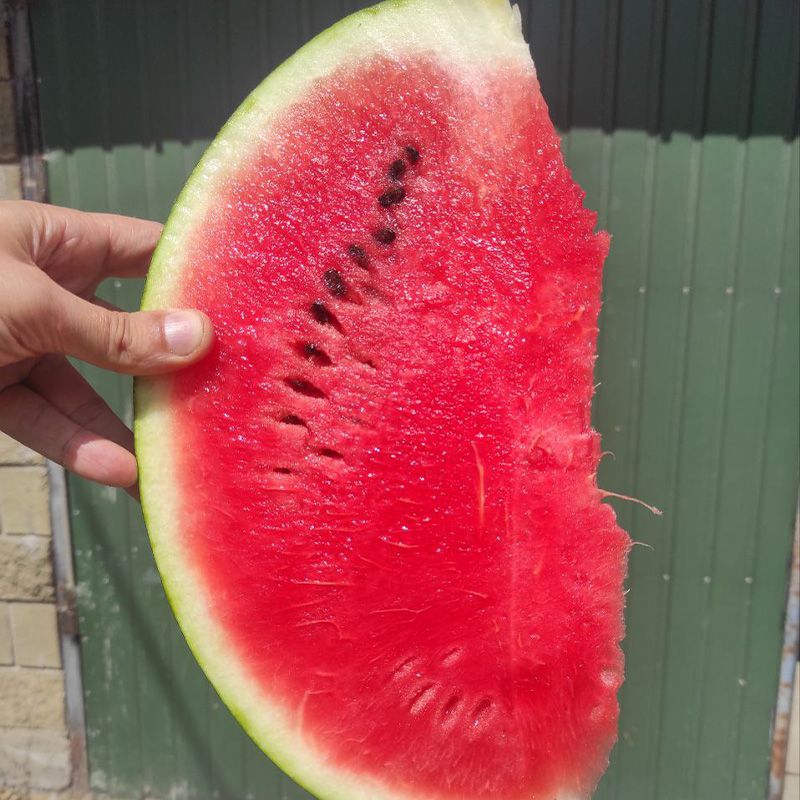 Семена крупные, мякоть насыщенно красная, структура хрустящая, сочная.