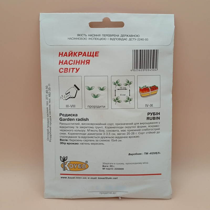 • Редис Рубин – сорт раннеспелого, урожайного редиса.