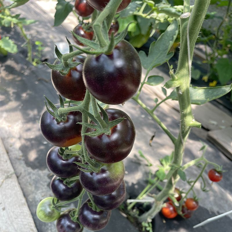 Характеристика плодов – Плоды округлой формы, весом 40-50 г, фиолетово-коричневого цвета. В кисти формируєтся по 8-10 выровненных плодов.