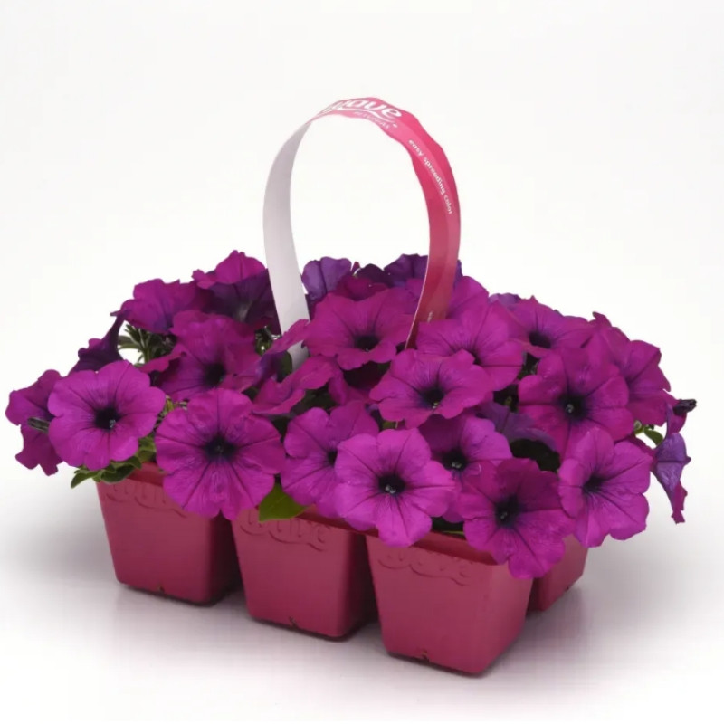 Серия сочетает в себе преимущества полуампельних (рассада занимает немного места) и ампельных гибридов (хорошо заполняет объем кашпо).
