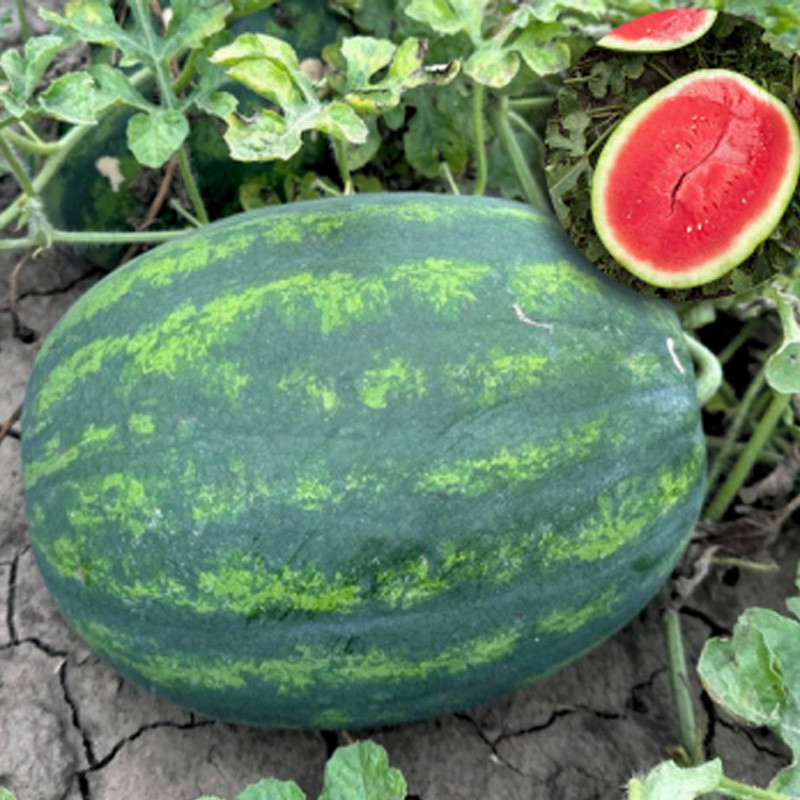 Характеристика плодов – округлой формы, полосатые, весом 5-7 кг, мякоть интенсивного алого цвета (Brix 12%).