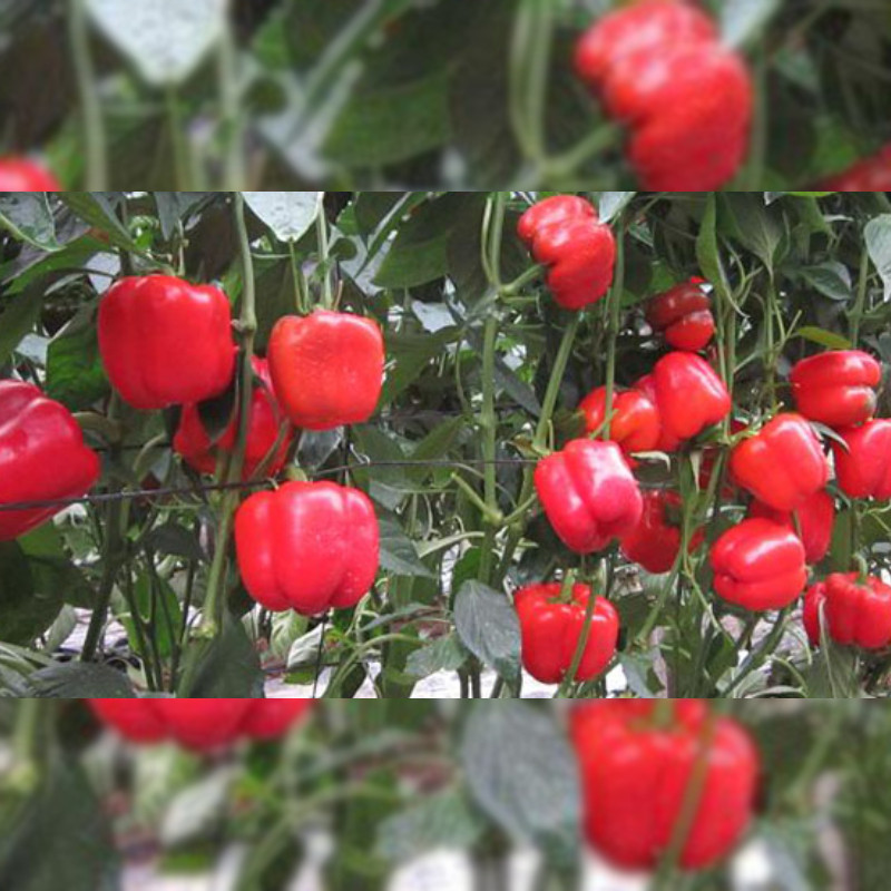 Характеристика плодов – Плоды кубовидной формы, однородные, насыщенно-красного цвета в фазе технической зрелости. Средний вес – 220–250 г. Обладают толстыми стенками и сочной, хрустящей мякотью.