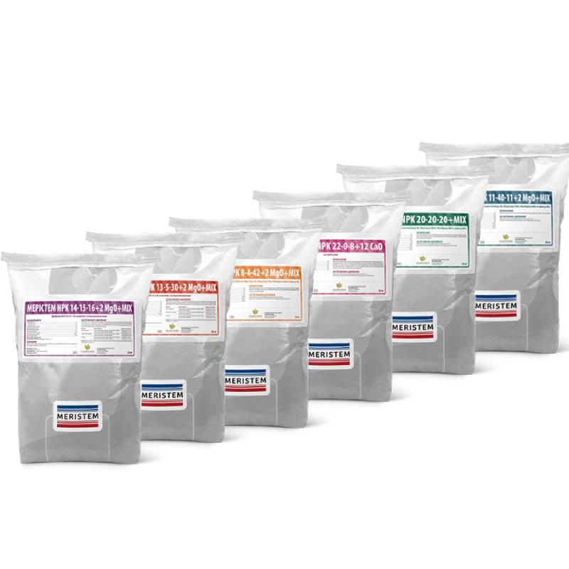Meristem NPK — универсальное удобрение для внекорневой подкормки и фертигации, разработанное для всех типов культур: полевых, овощных, плодовых и ягодных. Благодаря сбалансированному соотношению азота, фосфора и калия, а также комплекса микроэлементов в форме хелатов препарат обеспечивает полное и быстрое усвоение растениями питательных веществ.