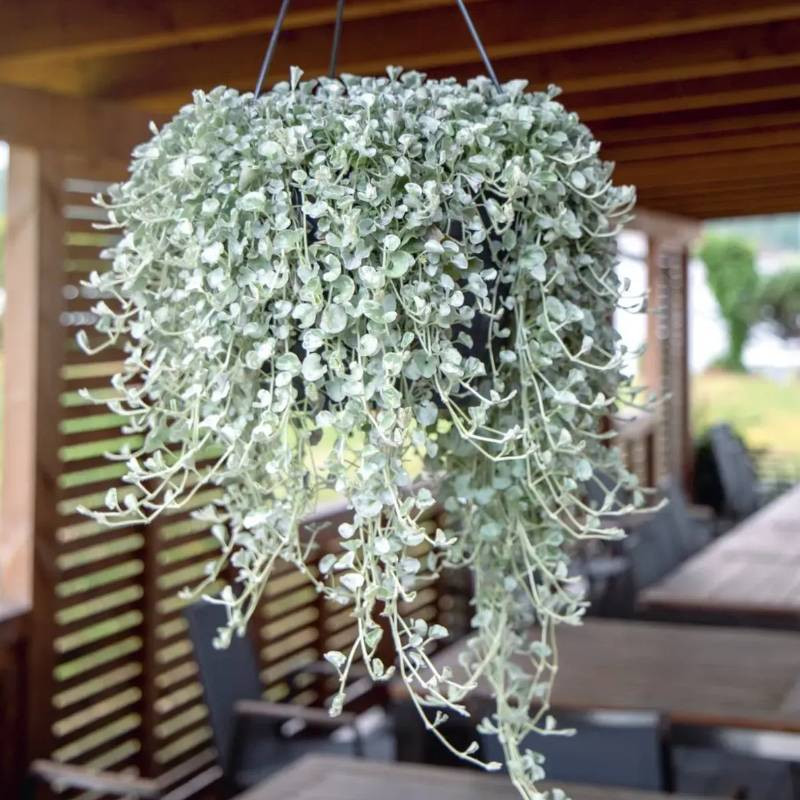 Вечнозеленая травянистая культура с нежными серебристыми побегами, стелющимися и образующими плотный декоративный ковер. Она идеально подходит для вертикального озеленения и создания эффекта живого водопада в кашпо и подвесных композициях.