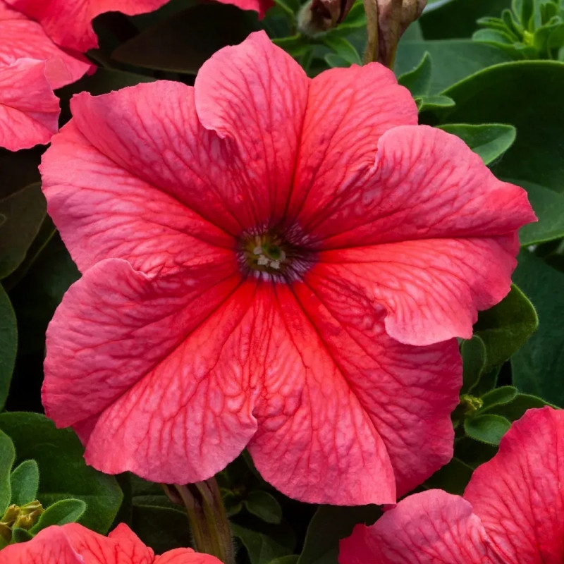 Петуния грандифлора Призма F1 (Petunia grandiflora Prism F1 Salmon) – изящный гибрид с крупными цветами нежно-лососевого оттенка, сочетающий декоративность и выносливость.