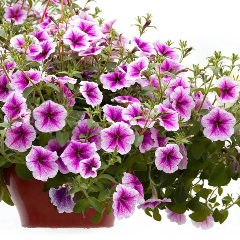 Петуния ампельная Опера Суприм F1 (Petunia hybrida Opera Supreme F1) цвет Purple Vein – утончённый гибрид с нежно-лиловыми цветками, украшенными выразительными пурпурными прожилками. Этот сорт очаровывает контрастом оттенков и лёгким сиянием лепестков на солнце.