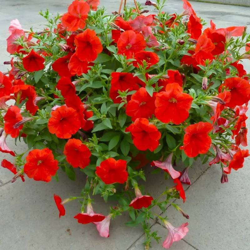Петуния ампельная Опера Суприм F1 (Petunia hybrida Opera Supreme F1) цвет Red – роскошный гибрид с насыщенными красными цветками, которые придают композициям выразительность и силу. Этот сорт ценится за обильное цветение, устойчивость и декоративную форму куста.