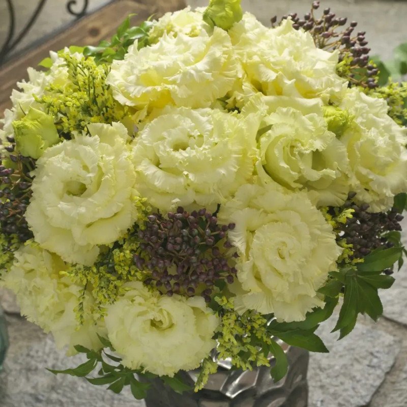 Эустома Корелли F1 желтая — классический срезочный материал премиум-класса. Отлично сочетается с розой, эустомой белой и розовой, лизиантусом сиреневым, альстромерией, маттиолой и гипсофилой. После срезки в вазе стоит до 14–18 дней.
