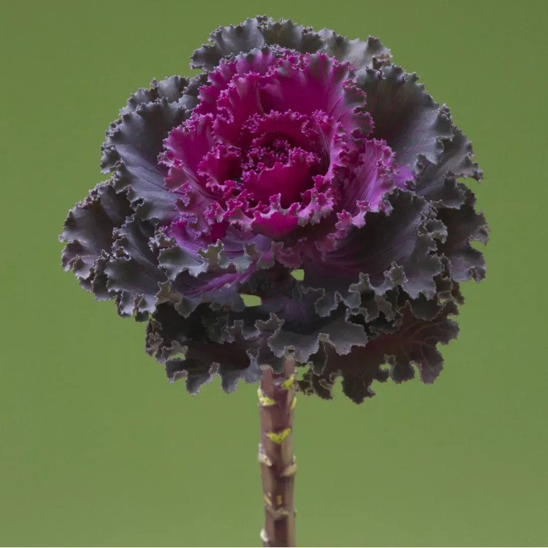 Этот сорт входит в серию Crane Ruffle, которая отличается гофрированными краями листьев, однородностью, компактностью и устойчивостью, идеально подходит для осеннего декора сада, клумб или срезки для букетов.