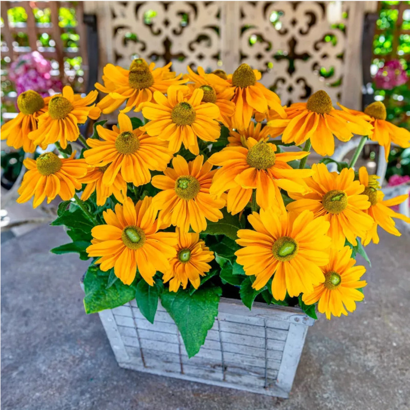 Рудбекия блестящая Амарилло Голд (Rudbeckia hirta 'Amarillo Gold') – это компактное однолетнее растение, которое превратит ваш сад в солнечный рай ярких золотых цветов.