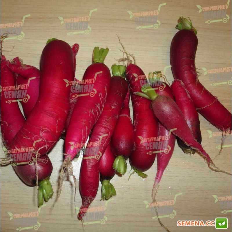 Данный сорт является раннеспелым, предназначен для потребления в пищу. Корнеплод красного цвета, удлинённо конической формы. В разрезе белый, сочный. Имеет высокие вкусовые показатели. Посев проходит с марта по апрель, сбор урожая в конце мая. Вегетационный период 40-45 суток.