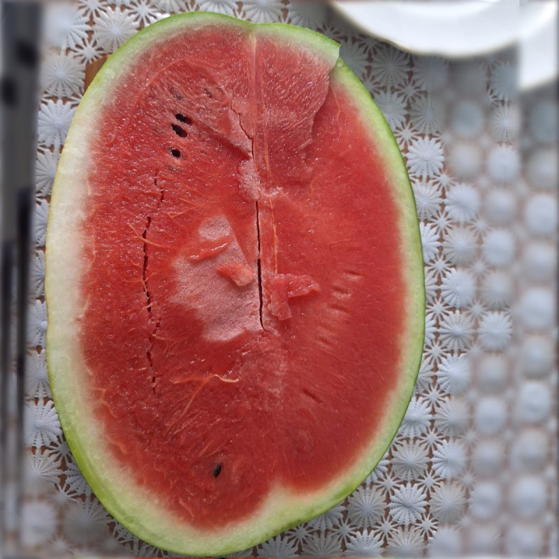 Плоды типа Чарльстон Грей со светлой «рубашкой» и мелкой, чётко выраженной полосатостью. Ягода округло-овальной формы. Средняя масса плода составляет 8–12 кг. На одном растении формируется 2–4 плода. Внутренняя структура отличается насыщенно-красной окраской, высоким содержанием сахаров и плотной мякотью.