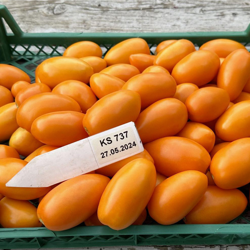 КС 737 F1 формирует овальные, плотные и мясистые плоды насыщенного оранжевого цвета как снаружи, так и внутри. Томаты отличаются выровненностью и устойчивостью к деформации при высоких температурах.