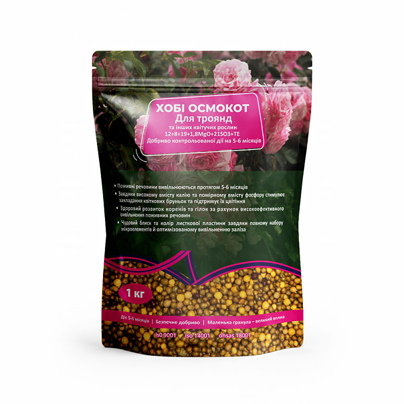 Осмокот Хобби для роз 12-8-19-2MgO+ТЕ 5-6М — это гранулированное удобрение длительного действия, разработанное специально для роз. Оно обеспечивает стабильное питание и способствует более пышному цветению, поддерживая здоровье растений на протяжении всего сезона.