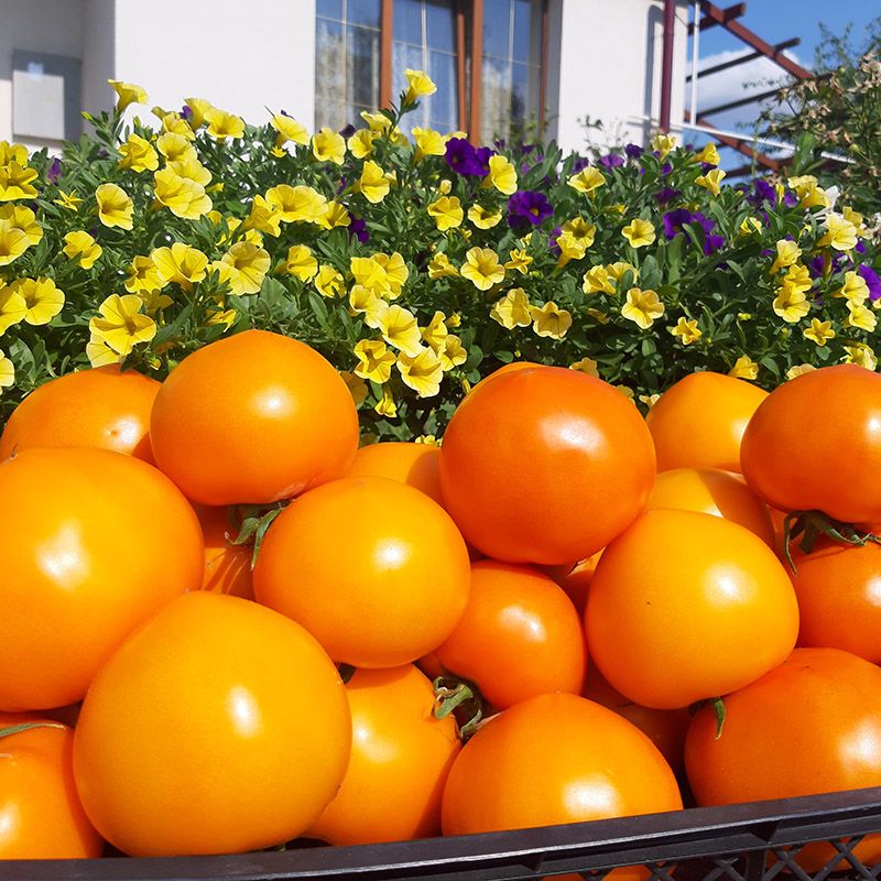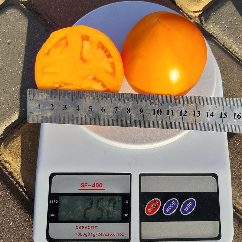 Характеристика плодов – Плоды округлой формы, средней массой 160-180 г, насыщенно-желтого цвета, без пятен и трещин. Плотная внутренняя структура плода, очень хорошие вкусовые качества.