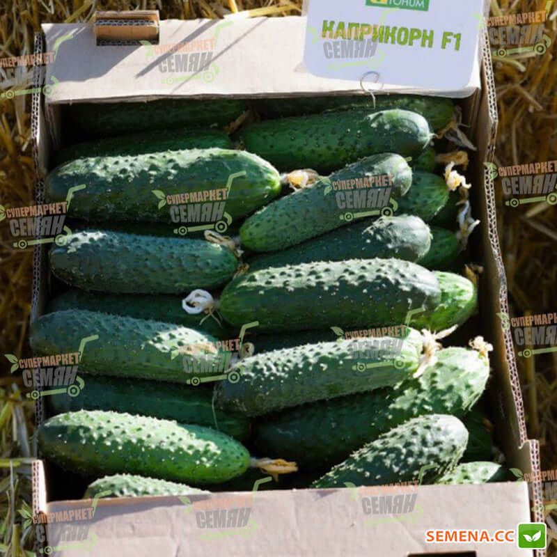 Ранний партенокарпический гибрид корнишон имеет букетный тип цветения. В пазухе завязывается до 5 плодов, длиной 12 - 14 см, насыщенного зеленого цвета. Формирует плотные плоды. Каприкорн F1 имеют прекрасный вкус и отличный аромат. Употреблять огурец в свежем виде, а также отлично подходит для маринования. Толерантен к недостатку влаги и к основным заболеваниям огурца. Подходит для выращивания в теплицах и в открытом грунте, для весеннего и осеннего сезонов.