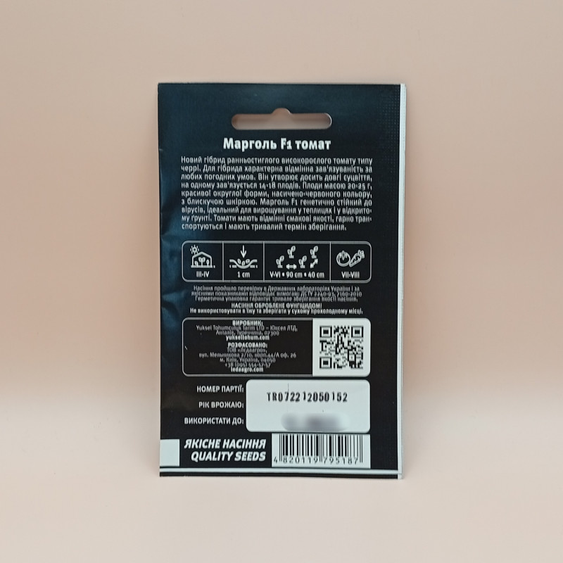 Кистевой индетерминантный томат, коктейльного типа. Растение раннее, высокорослое. Отличается сорт Марголь F1 плодами высокого качества и хорошей устойчивостью к растрескиванию и заболеваниям. Плотные плоды, по 14-18 томатов на кисти. Средний вес помидоров 15-20 гр. Томаты гибриды Марголь F1 выращивают весной и осенью, в теплицах