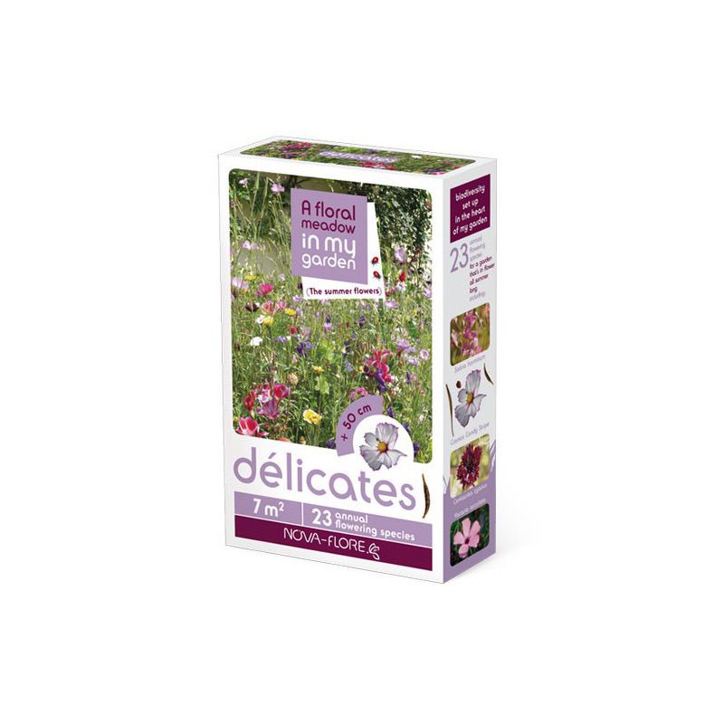Смесь «Летние цветы – Деликейтс» способна засеять Ваш сад цветами с нежной и приятной раскраской. Цветение начинается уже через 6-8 недель после посева и продолжается примерно 3-4 месяца. После окончания цветения, растения рекомендуется срезать и удалить с почвы, для того, чтобы можно было снова засеять в следующем году.