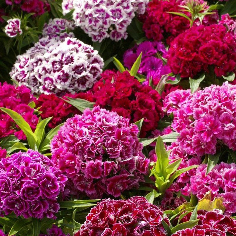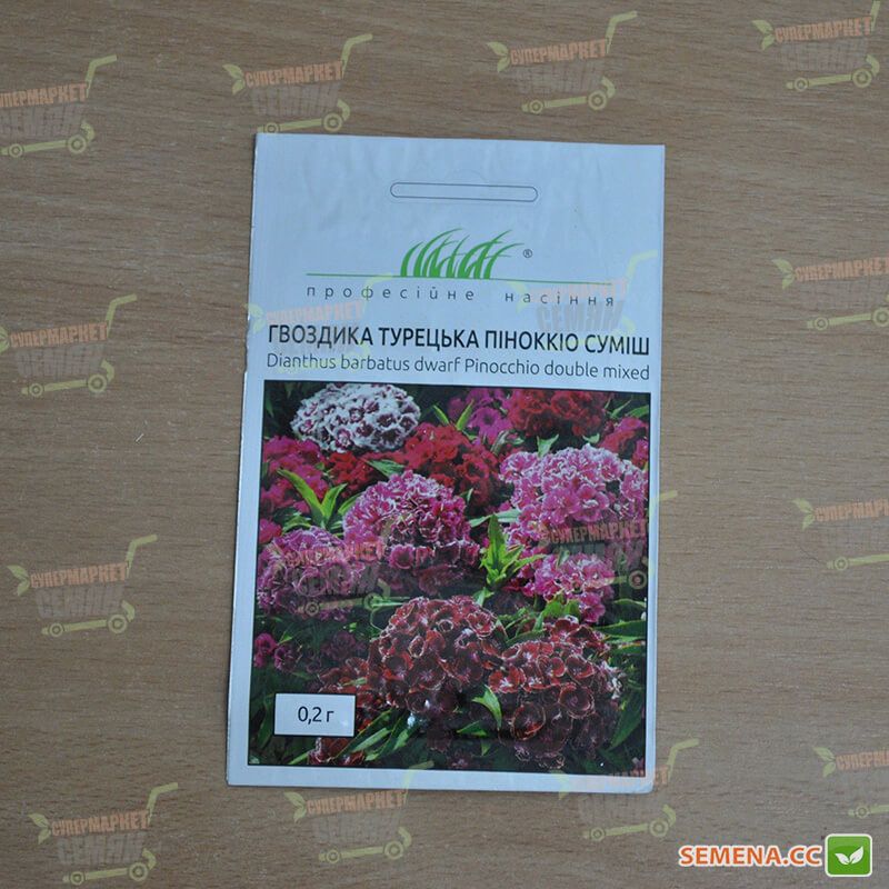 Гвоздика турецкая Пинноккио смесь (Dianthus barbatus dwarf Pinocchio double mix) – двухлетняя культура с яркими соцветиями на невысоких (25-30 см) стеблях.