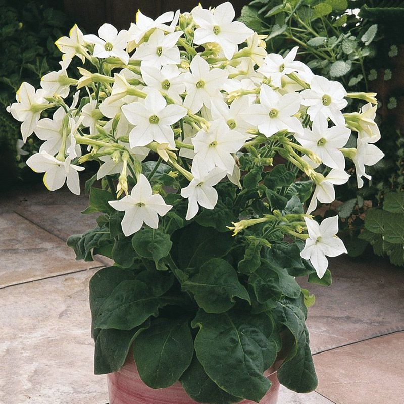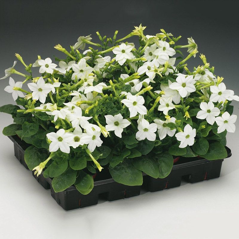 Табак крылатый Саратога F1 белый (Nicotiana alata Saratoga F1 white) – одна из самых раннецветущих серий на рынке.