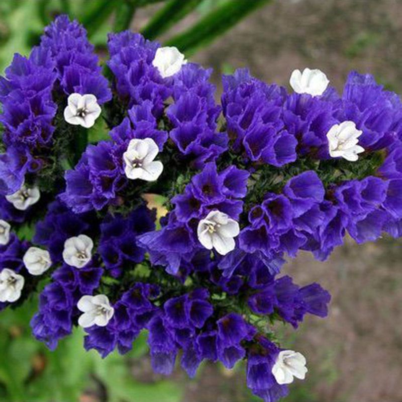 Статица выемчатая Синяя река (Limonium sinuatum Biue River) – однолетнее растение, высотой 60-70 см, с прямостоячими стеблями, разветвленными в верхней части.