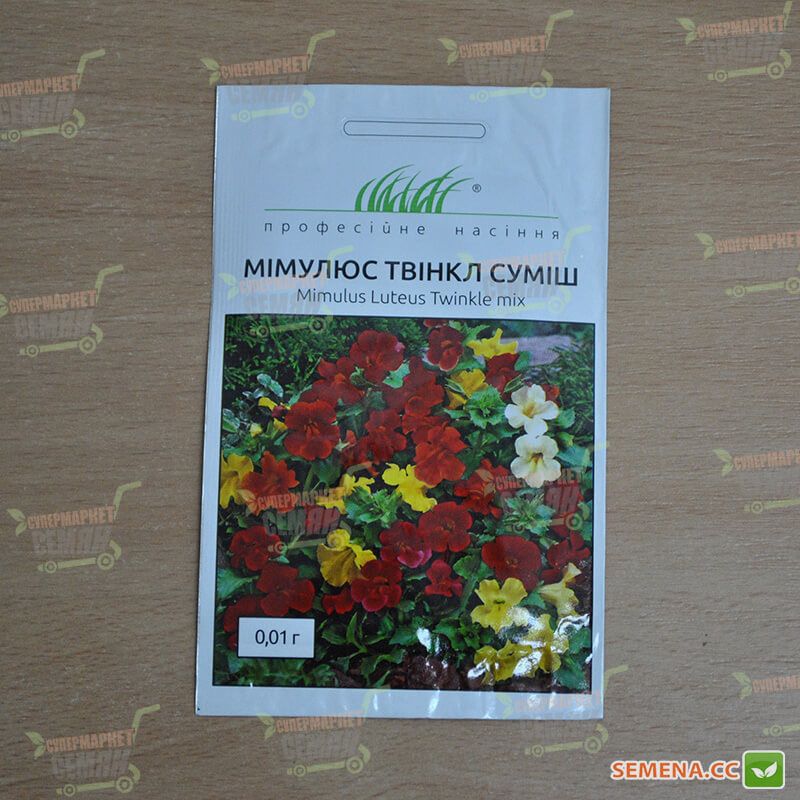 Мимулюс гибридный Твинкл смесь (Mimulus Luteus Twinkle mix) – декоративное однолетнее растение, которое образует густо-разветвленный кустик, высотой 15-20 см.