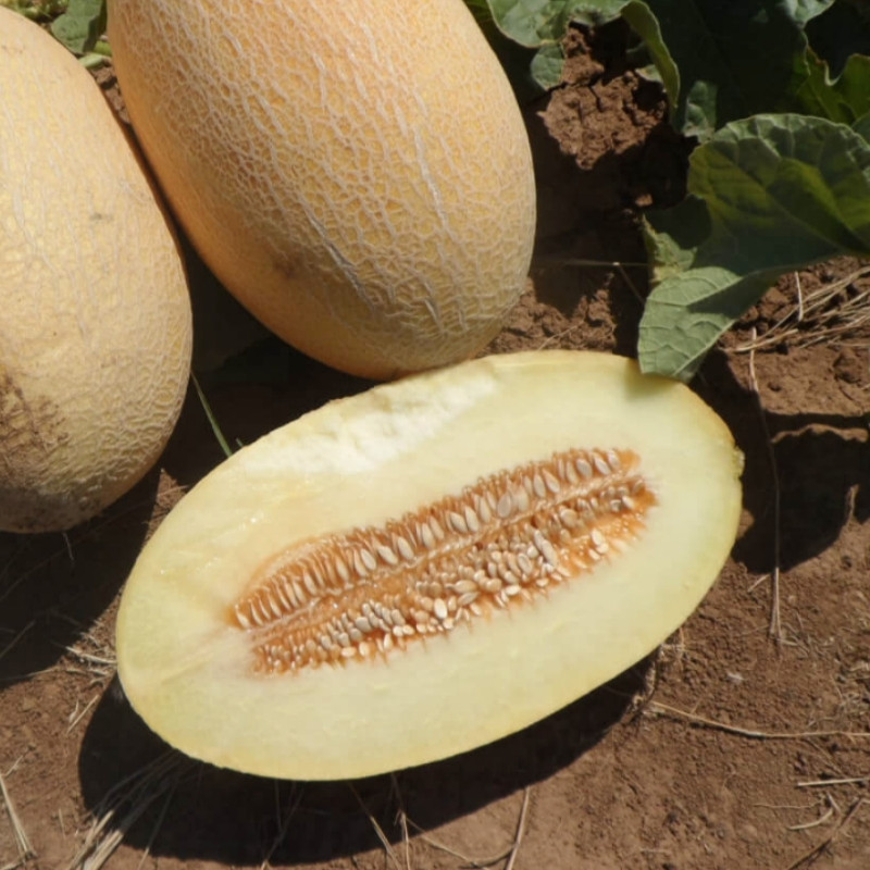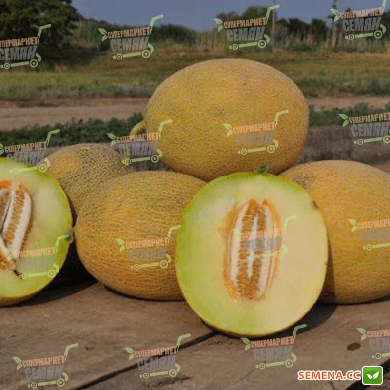 Плоды ярко-желтые, овальные, транспортабельные, с сеткой на кожуре и небольшой семенной камерой, весом 3-5 килограмм. Мякоть белоснежная, ароматная, с замечательными вкусовыми качествами.