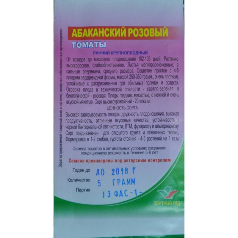 Томат Абаканский - это ранний крупноплодный розовый томат от компании Элитный ряд.