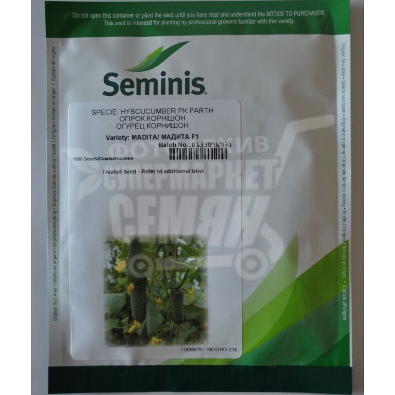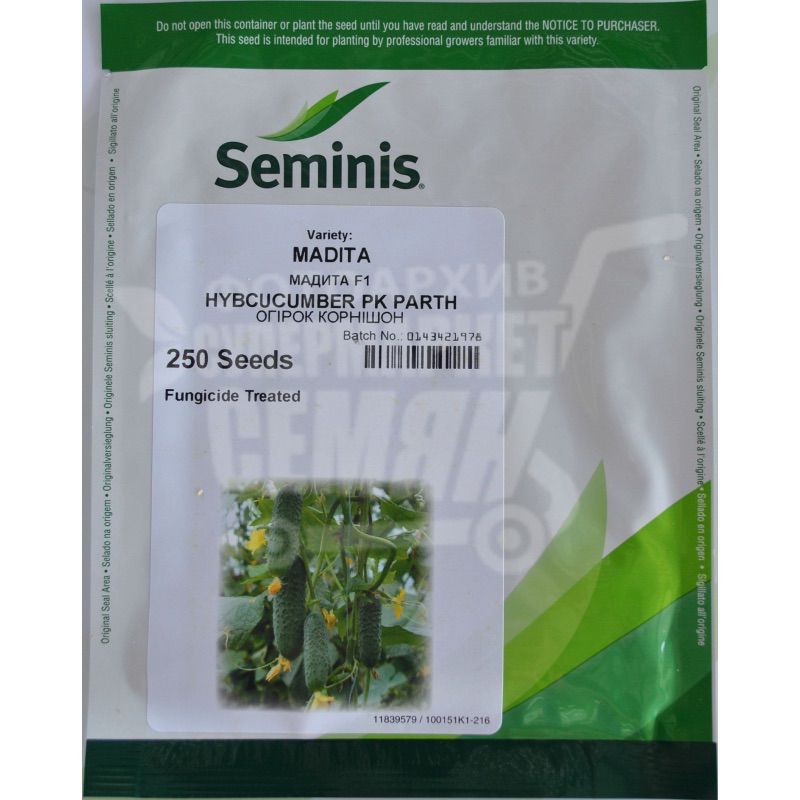 Мадита F1 (гибрид) - самоопыляющийся огурецселекции Семинис с отличной плотностью и соотношением длины к диаметру (три к одному). Благодаря однородности фермеры могут получить урожай с повышенным процентом плодов товарного вида. Высокая урожайность и раннее созревание выделяют данный гибрид среди прочих огурцов. Сроки созревания 40 - 45 дней. А благодаря открытому типу растения уборка становится не столь затруднительной и более быстрой. Засолка и потребление в свежем виде - основное использование данного гибрид огурцов благодаря отсутствию горечи. Возможность выращивания в: стеклянной теплице, парнике и открытом грунте.