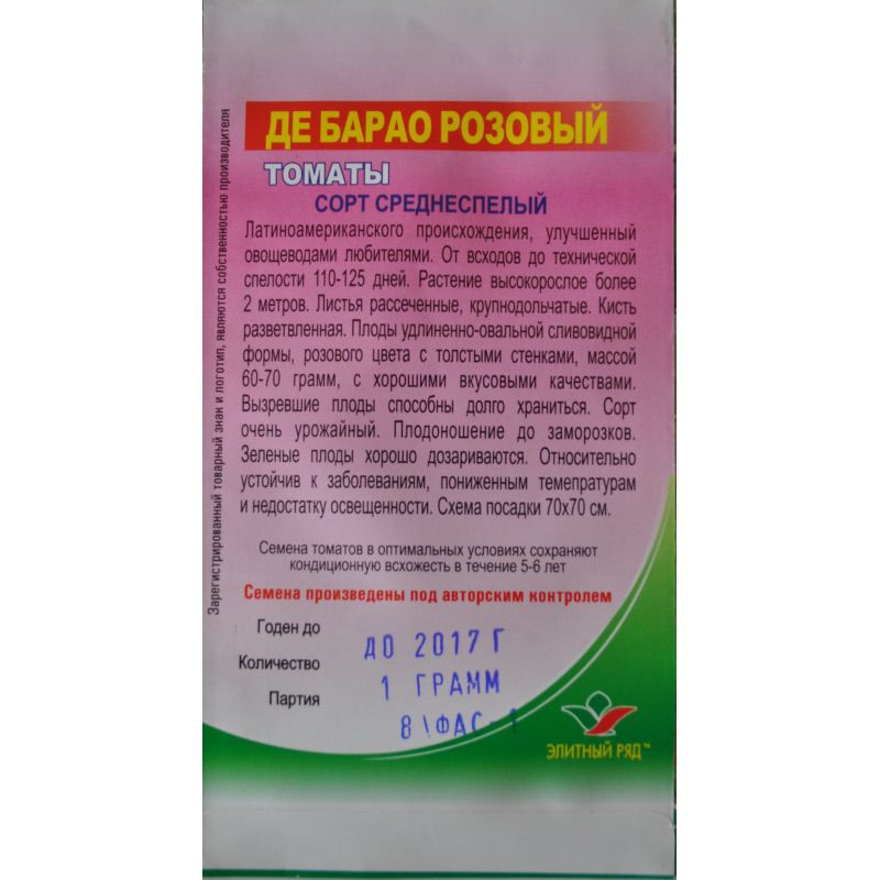 Томат Де барао - это индетерминантный розовый томат от компании Элитный ряд, латиноамериканского происхождения, улучшенный овощеводами любителями.