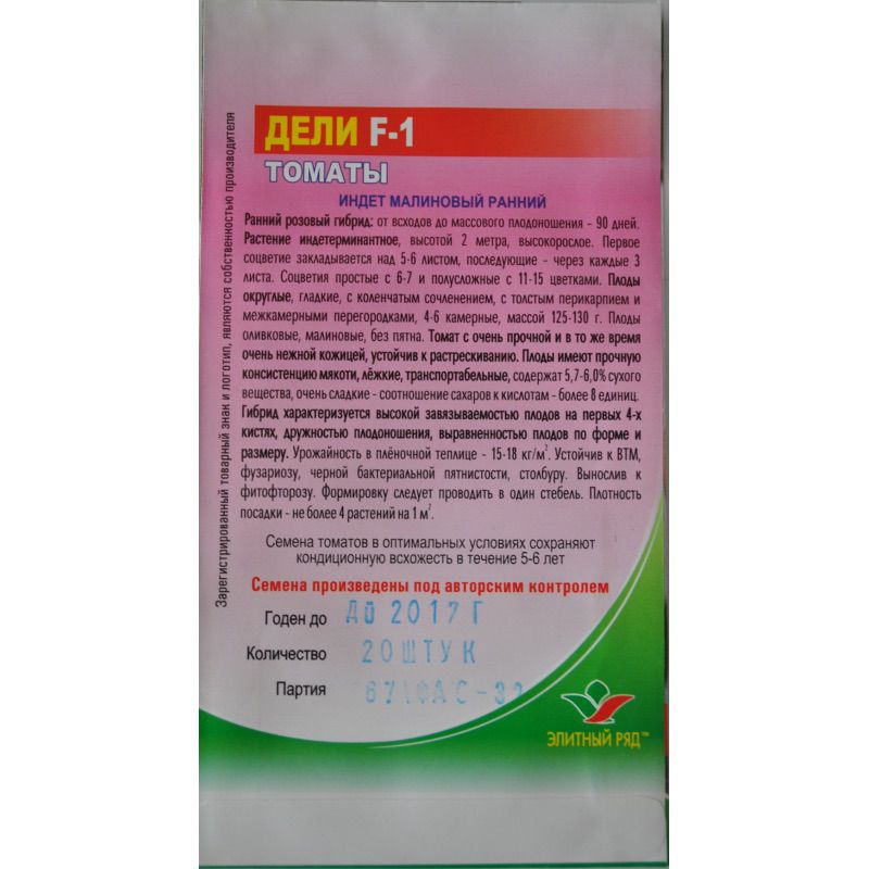 Дели F1 устойчив к растрескиванию, ВТМ, фузариозу, черной бактериальной пятнистости, столбуру, фитофторозу.