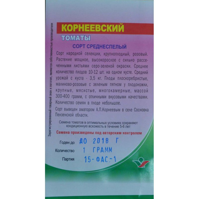 Семена томата Корнеевский (Элитный ряд) могут быть в двух видах упаковки: