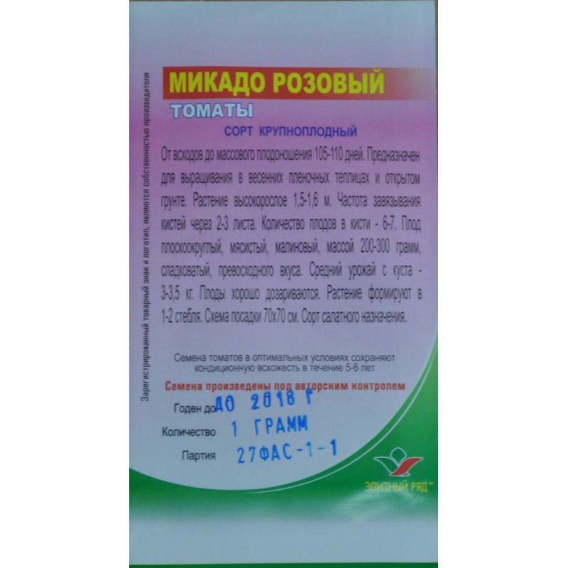 Томат Микадо – это сорт розового индетерминантного томата компании Элитный ряд.