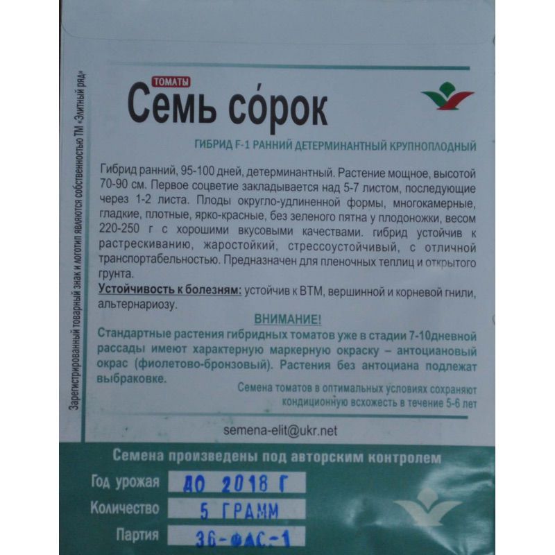 Томат Семь сорок - это ранний (95-100 дней) детерминантный гибрид компании Элитный ряд.