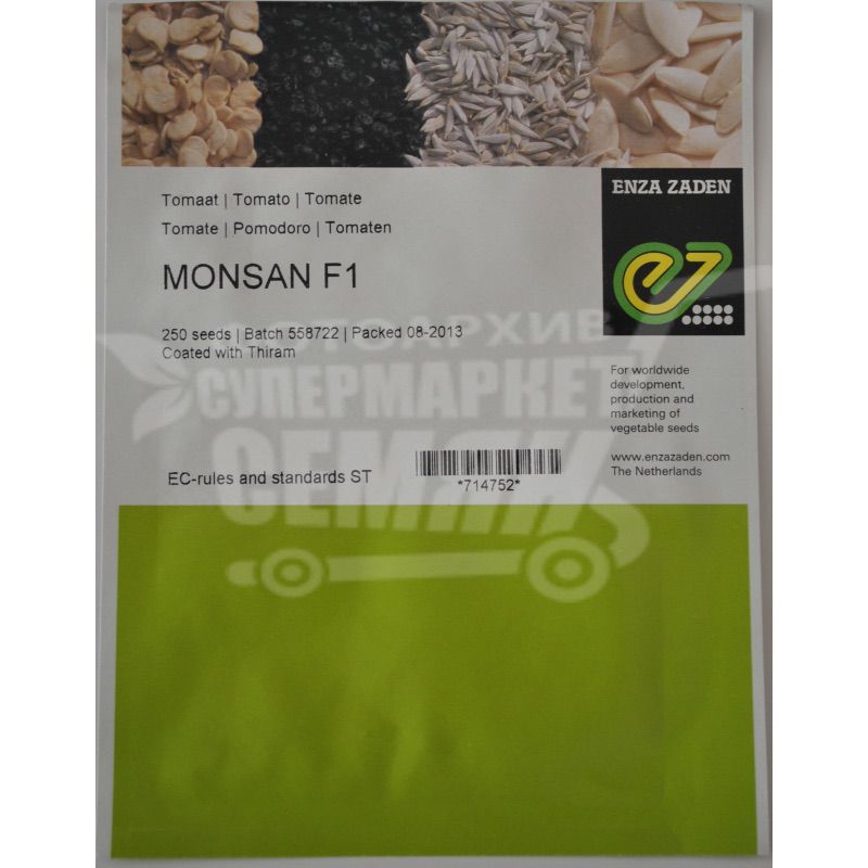 Монсан F1 семена томата полудетерминантного (Enza Zaden). Период вегетации 75 дней. Полудетерминантный высокоурожайный томат с качественными плодами. Отлично растет в пленочных теплицах. Растение сильное, плодоносить начинает очень рано. Помидоры красного цвета, круглые, транспортабельные, долго сохраняют свой товарный вид, весят в среднем 140-160 грамм. Толерантности гибрида Монсан F1: вирус мозаики томата, вертицилезное увядание, фузариоз и нематода.
