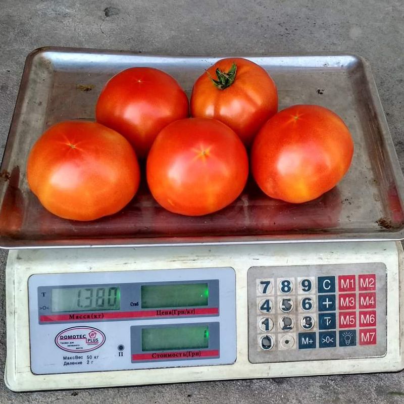 Характеристика плода – Плоды крупные, весом 240-280 г, многокамерные, не растрескивающиеся, без зеленого пятна вокруг плодоножки, плоско-округлой формы, красного цвета снаружи и внутри, с отличными вкусовыми качествами. Пригодны для транспортировки.