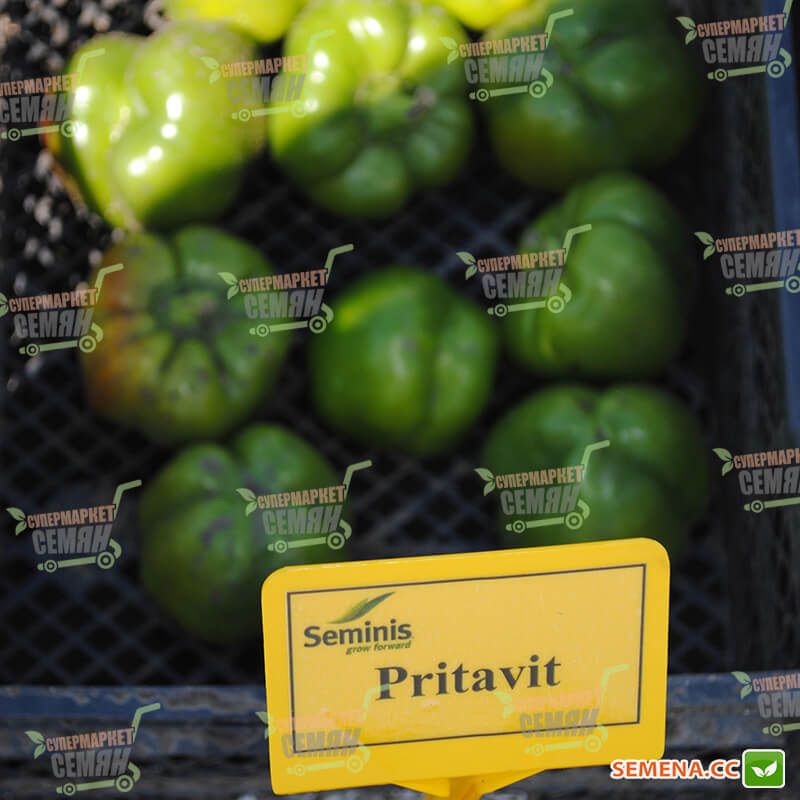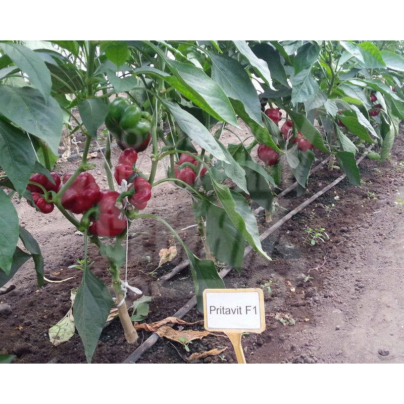 Pritavit F1 - данный гибрид перца относится к новинкам селекции Семинис с ранним периодом зрелости. Период сбора через 70 дней после высадки рассады. Условия выращивания также влияют на период зрелости. Плод размером 7 на 11 см и весом 160 грамм имеет тёмно-красный цвет с блестящей поверхностью. Ребристые формы перца, напоминающие форму томата, взращиваются в открытом грунте (с возможностью выращивания в теплицах). Вкус отличается сладостью.
