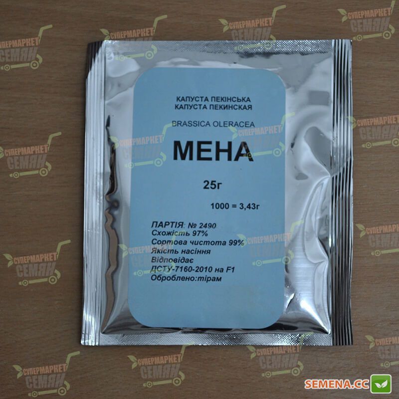 Мена - это ранняя пекинская капуста, у которой вегетационный период длится около месяца (30 - 35 дней). Вес одного качана может достичь до полутора килограмм. Листья у этой капусты имеют тёмно-зелёную окраску.